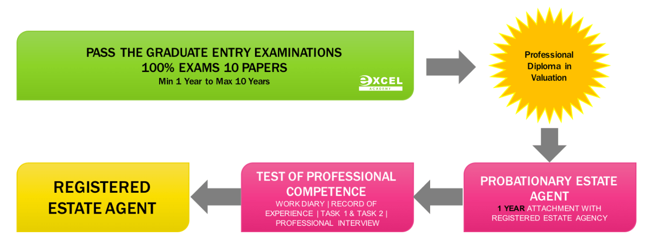 Candidates who have passed the professional examination will have two career choices, i.e. to become a Registered Valuer, Property Manager & Estate Agent or to become a Registered Estate Agent only.